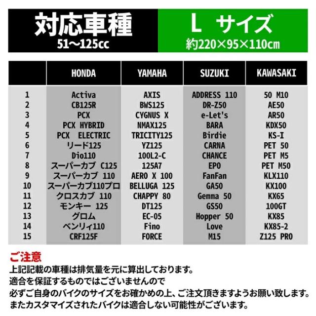 L:原付〜小型バイク(125cc)