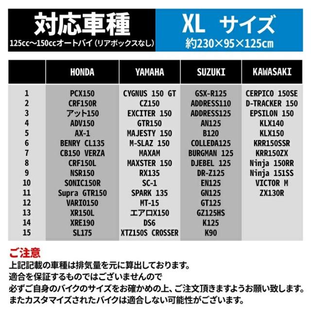 XL:125cc〜150ccオートバイ(リアボックスなし)