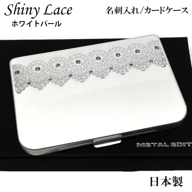 カードケース 名刺入れ シャイニーレース 日本製 ホワイトパール 潰れない 白 可愛い ストーン 名刺ケース レディース プレゼント ギフト