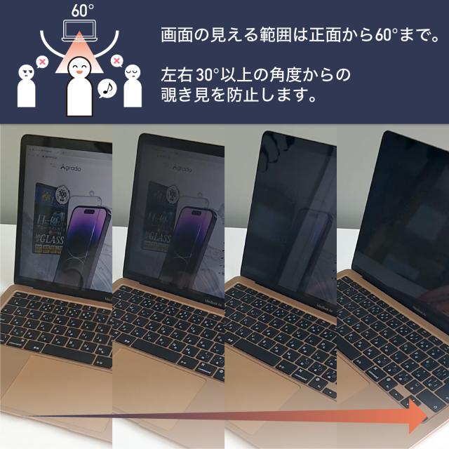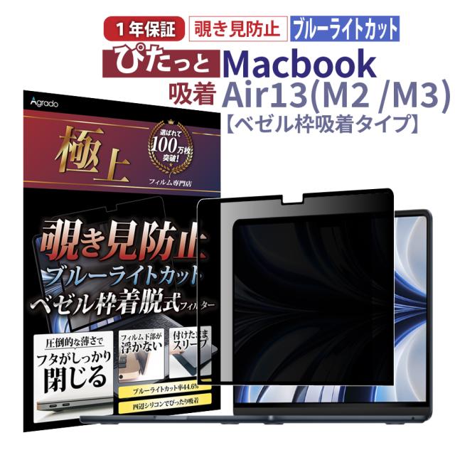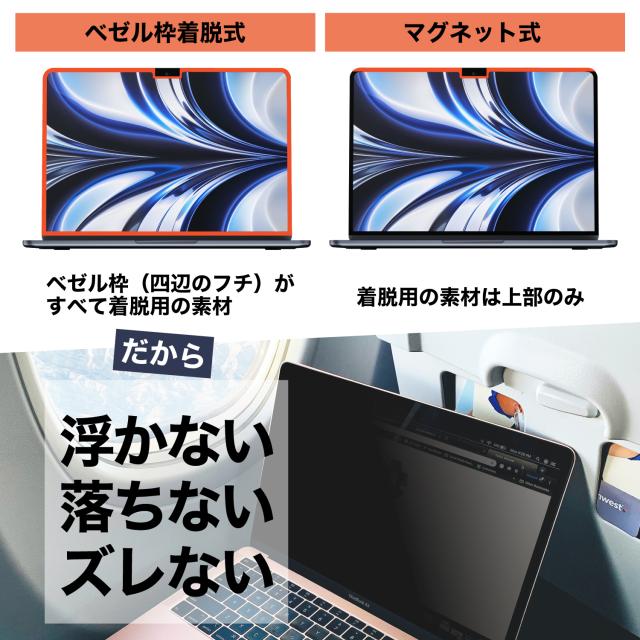 13インチ Macbook Air 13 2025新型対応 (M4 / M3 / M2) モニター着脱式 覗き見防止 プライバシー保護フィルター ブルーライトカット かんたん 安心 リバーシブル 光沢 非光沢 保護フィルム 保証 マックブック おまけ付き 防水ケース ポイント消化
