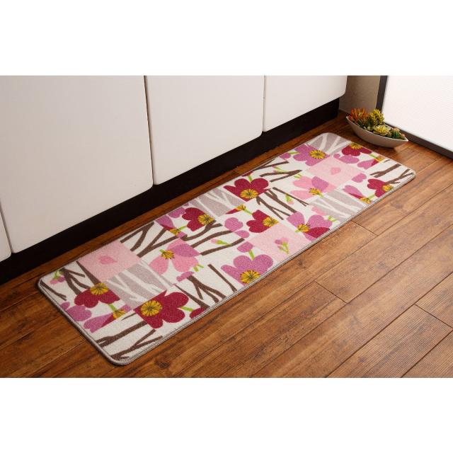 さくら柄キッチンマット 和柄 120cm 春 40×120 裏面すべりにくい 軽量タイプ パッチワーク調