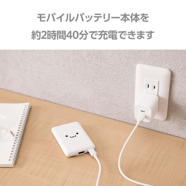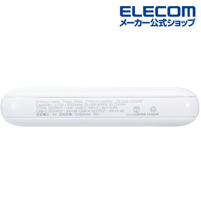 エレコム モバイルバッテリー 薄型コンパクト 5000mAh 小型 Type-C入 1ポート USB-A 1ポート 15W出力 しろちゃん┃DE-C45-5000WF