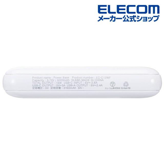 エレコム モバイルバッテリー 薄型コンパクト 5000mAh 小型 USB Type-C入出力1ポート USB-A出力1ポート 15W出力 しろちゃん┃EC-C12WF