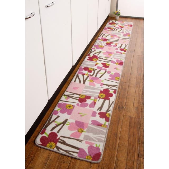 さくら柄キッチンマット 和柄 240cm 春 40×240 裏面すべりにくい 軽量タイプ パッチワーク調