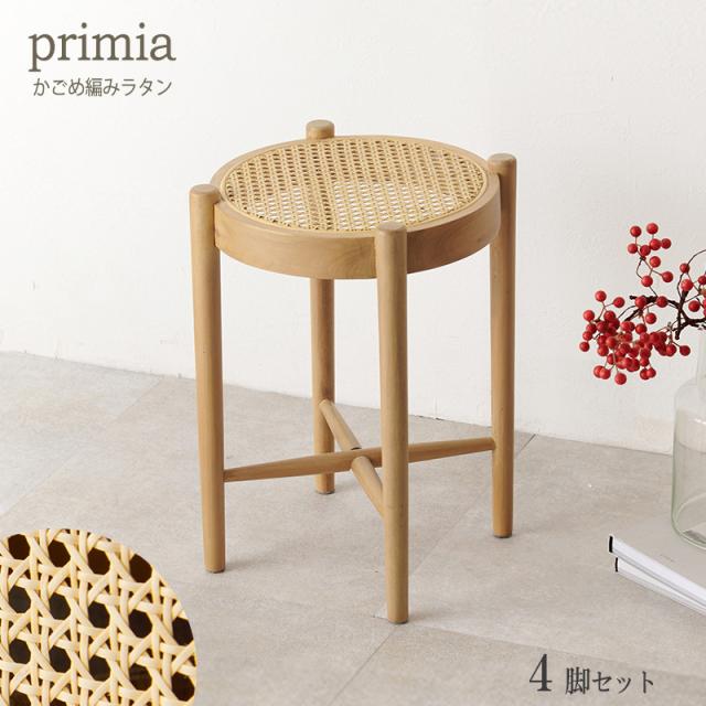 スツール 4脚セット ラタン張り 天然木マホガニー ナチュラル 子椅子 ドレッサーサイドテーブル 幅41.5cm 韓国風 通気性 Primia