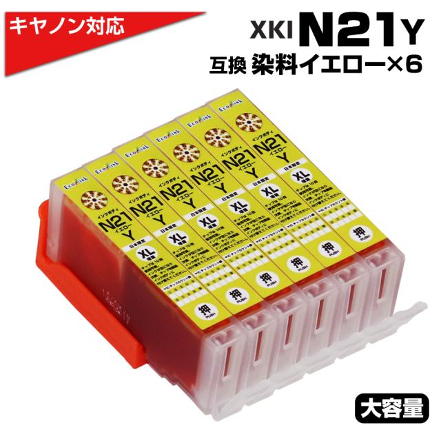 XKI-N21 Y イエロー×6個 染料 大容量 プリンター キャノン canon 互換インクカートリッジ 染料 イエロー XKI-N21 XKIn21 XKI-N21XL Y PIXUS XK100 XK110 XK120 XK130 XK140 XK500 XK510