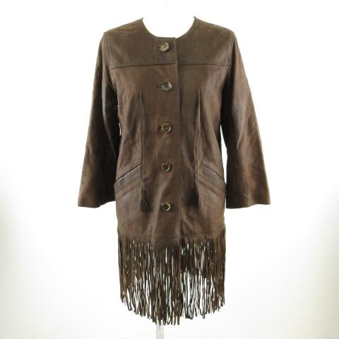 【中古】ティヤマイ t.yamai paris レザージャケット 七分袖 フリンジ シープスキン 茶 1 *T214 レディース