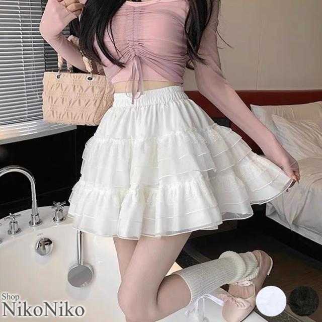 全品送料無料一部除く ハイウエスト ティアード フリルミニスカート ma 【即納】 ティアード チュール レース シアー パニエ インパン フレア ショート丈 スカパン Aライン バレエコア レディース 韓国 プチプラ 流行り トレンド 人気 おすすめ おしゃれ かわいい