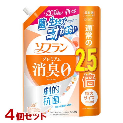 ソフラン プレミアム消臭 柔軟剤 アロマソープの香り 詰替用 特大 950ml×4個セット ライオン(LION)【送料込】