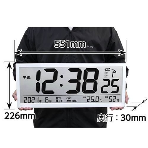 オフィス・施設でも見やすい大画面! 温湿度計付き業務用時計。