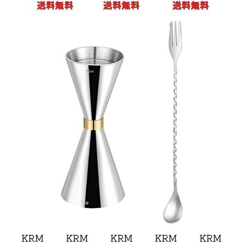 ジガーカップステンレス鋼計量カップ オンスカップ 目盛り付きカップ カクテル計量カップ ステンレス鋼の双頭バースプーン カクテルスプ