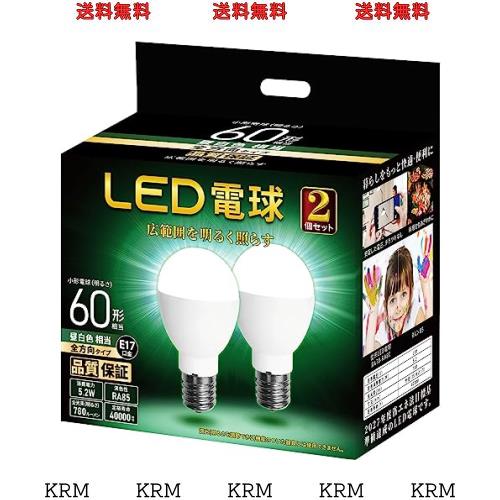 LED電球 口金直径17mm 電球60W形相当 昼白色相当(5.2W) 一般電球・広配光タイプ 断熱材施工器具 密閉形器具対応 PSE認証 2個セット (昼白