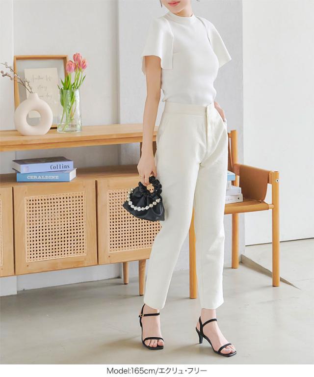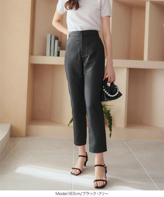 春新作 ハートジャガードセンタープレステーパードパンツ M4037 入荷済 レディース 30代 40代 パンツ ズボン テーパード スラックス オケージョン セレモニー フォーマル ハート ポケット エクリュ ブラック