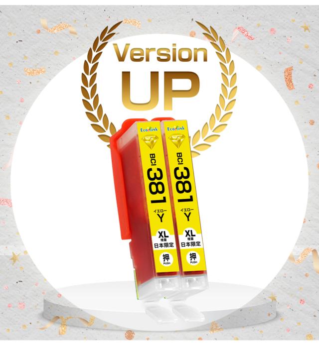 BCI-381Y イエロー×2個 大容量 キャノン/Canon 互換インクカートリッジ イエロー BCI381 BCI-381XLY PIXUS TS8330 TS7330 TS6330 TS7430 TS8230 TS8130 TS6230 TS6130 TR9530 TR8530 TR7530 TS8430 TR8630