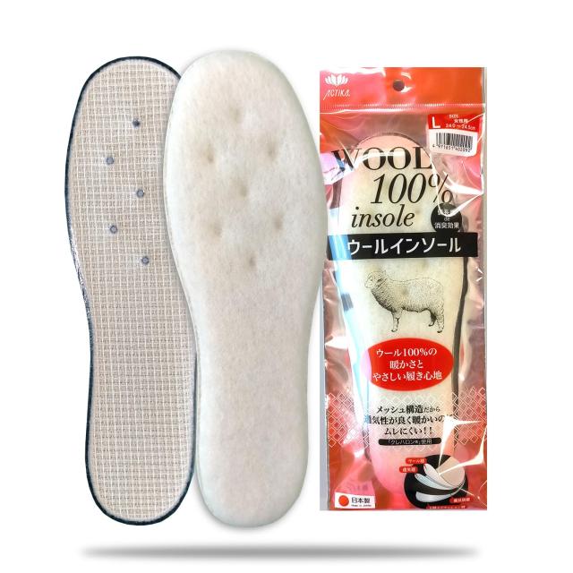 商品紹介 天然素材を100%使用したウールインソール。保温、肌触りに優れています。 活性炭入りで足の臭いを消臭。 ムレを防ぐメッシュ構造で快適に靴の中を保ちます。 仕様:女性用 活性炭入り