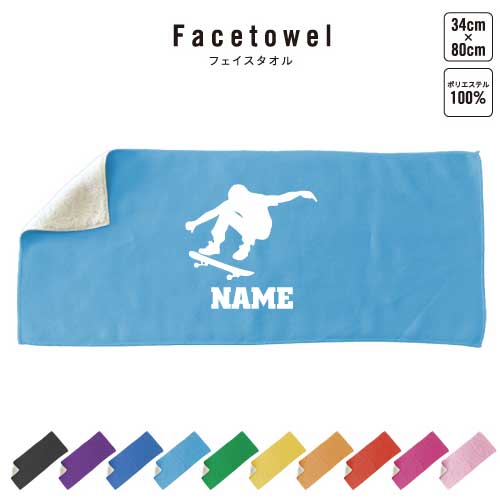 スケボー 名入れフェイスタオル 名入れ タオル スポーツタオル フェイスタオル 卒業祝い 卒業記念品 名入れ記念品 卒団祝い 卒部祝い お揃い 複数買い ふんわり厚手 スケボー スケートボード ollie