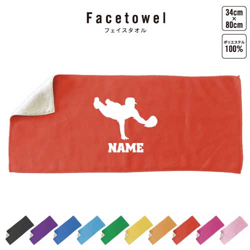 表はプリントが映えるサラサラの肌触りで、裏面はふんわり柔らか生地のフェイスタオル。推し色で推し活にも使える、豊富なカラーバリエーションは綺麗な発色で10色展開。正面にシルエット&お名前を入れた当店定番デザイン。運動会や部活などの応援にはもちろん、吸水力も抜群で選手やお子さんも使い勝手よし。誕生日、記念日などの記念品、父の日母の日敬老の日などのギフトシーンでもオンワリーワンなアイテムとして活躍間違いなし。部活やクラブ活動、少年団やサークル、スポーツチームなどの卒部記念品、卒業記念品、卒団記念品、贈答品にも選ばれます。贈って嬉しいもらって嬉しいギフトアイテムです。