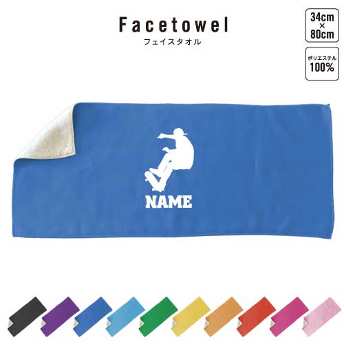 スケボー4 名入れフェイスタオル 名入れ タオル スポーツタオル フェイスタオル 卒業祝い 卒業記念品 名入れ記念品 卒団祝い 卒部祝い お揃い 複数買い ふんわり厚手 スケートボード 板 ストリート