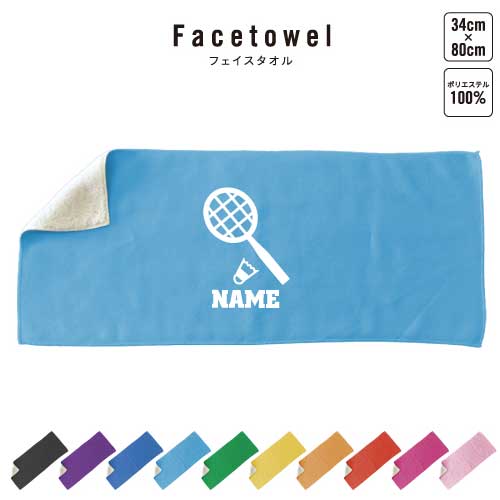 バドミントン1 名入れフェイスタオル 名入れ タオル スポーツタオル フェイスタオル 卒業祝い 卒業記念品 名入れ記念品 卒団祝い 卒部祝い お揃い 複数買い ふんわり厚手 ラケット シャトル ネット