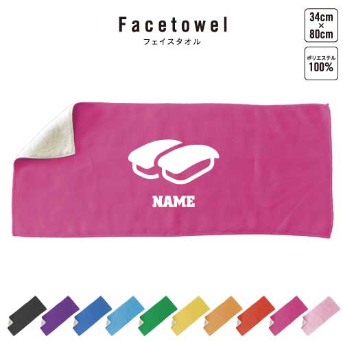 お寿司 名入れフェイスタオル 名入れ タオル スポーツタオル フェイスタオル 卒業祝い 卒業記念品 名入れ記念品 卒団祝い 卒部祝い お揃い 複数買い ふんわり厚手 sushi 大トロ 中トロ 軍艦 わさび