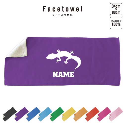 トカゲ 名入れフェイスタオル 名入れ タオル スポーツタオル フェイスタオル 卒業祝い 卒業記念品 名入れ記念品 卒団祝い 卒部祝い お揃い 複数買い ふんわり厚手 ヒョウモントカゲモドキ 爬虫類