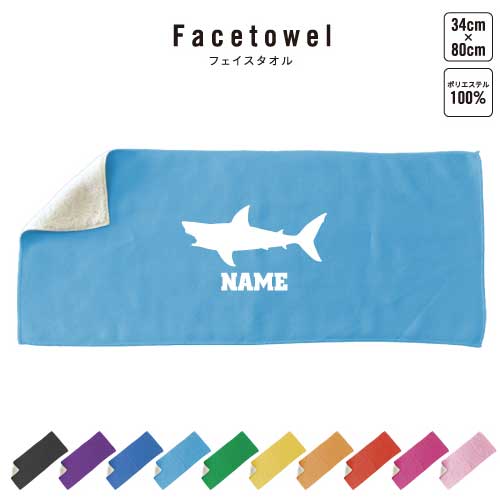 サメ 名入れフェイスタオル 名入れ タオル スポーツタオル フェイスタオル 卒業祝い 卒業記念品 名入れ記念品 卒団祝い 卒部祝い お揃い 複数買い ふんわり厚手