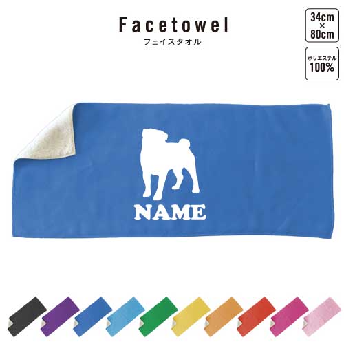 パグ 犬種別ドッグシルエット 名入れフェイスタオル 名入れ タオル スポーツタオル フェイスタオル 卒業祝い 卒業記念品 名入れ記念品 卒団祝い 卒部祝い お揃い 複数買い ふんわり厚手
