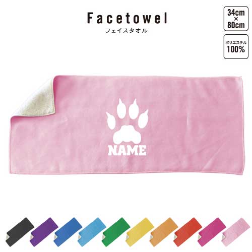 足跡4 名入れフェイスタオル 名入れ タオル スポーツタオル フェイスタオル 卒業祝い 卒業記念品 名入れ記念品 卒団祝い 卒部祝い お揃い 複数買い ふんわり厚手 猫 ネコ ねこ キャット 肉球