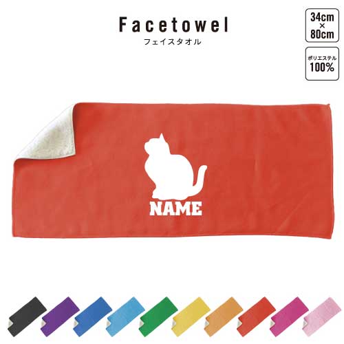 スコティッシュフォールド1 名入れフェイスタオル 名入れ タオル スポーツタオル フェイスタオル 卒業祝い 卒業記念品 名入れ記念品 卒団祝い 卒部祝い お揃い 複数買い ふんわり厚手 猫 ネコ ねこ キャット ペット