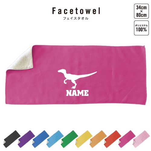 ヴェロキラプトル 名入れフェイスタオル 名入れ タオル スポーツタオル フェイスタオル 卒業祝い 卒業記念品 名入れ記念品 卒団祝い 卒部祝い お揃い 複数買い ふんわり厚手 恐竜 化石 肉食 草食 雑食 海 陸