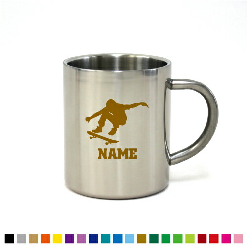 「スケボー」名入れステンレスマグカップ(小) 真空二重構造 サーモ サーモマグ サーモステンレス 保冷性 保温性 断熱 部活 卒業 記念品 卒業祝い 卒部祝い 卒団祝い【cb】名入れ マグカップ ステンレス プレゼント グッズ スケーター スケボー