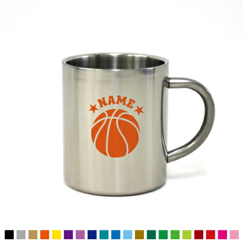 「バスケットボール」名入れステンレスマグカップ(小) 真空二重構造 サーモ サーモマグ サーモステンレス 保冷性 保温性 断熱 部活 卒業 記念品 卒業祝い 卒部祝い 卒団祝い【cb】名入れ マグカップ ステンレス プレゼント グッズ バスケ 籠球