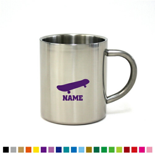 スケボー2 名入れステンレスマグカップ(小) 真空二重構造 サーモ サーモマグ サーモステンレス 保冷性 保温性 断熱 コーヒーカップ 湯飲み シルエット 選べるカラー【cb】スケートボード 板 ストリート