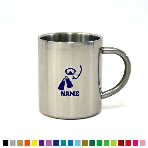 ダイバー 名入れステンレスマグカップ(小) 真空二重構造 サーモ サーモマグ サーモステンレス 保冷性 保温性 断熱 コーヒーカップ 湯飲み シルエット 選べるカラー【cb】水 潜水 潜る 救助