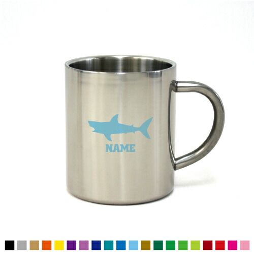 「サメ」名入れステンレスマグカップ(小) 真空二重構造 サーモ サーモマグ サーモステンレス 保冷性 保温性 断熱 コーヒーカップ 湯飲み 部活 卒業 記念品 卒業祝い 卒部祝い 卒団祝い【cb】名入れ マグカップ ステンレス 鮫 フカヒレ ジョーズ shark