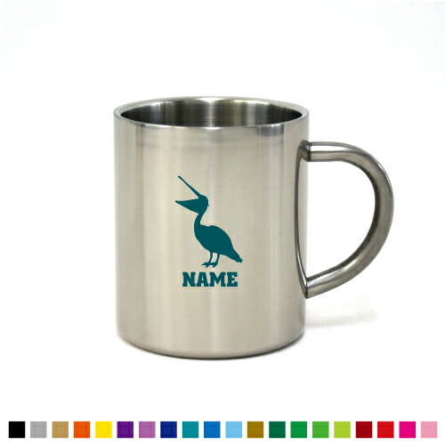 「ペリカン」名入れステンレスマグカップ(小) 真空二重構造 サーモ サーモマグ サーモステンレス 保冷性 保温性 断熱 部活 卒業 記念品 卒業祝い 卒部祝い 卒団祝い【cb】名入れ マグカップ ステンレス Pelican 鳥