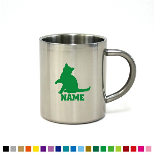 アメリカンワイヤーヘアー 名入れステンレスマグカップ(小) 真空二重構造 サーモ サーモマグ サーモステンレス 保冷性 保温性 断熱 コーヒーカップ 湯飲み シルエット 選べるカラー【cb】猫 ネコ ねこ キャット ペット