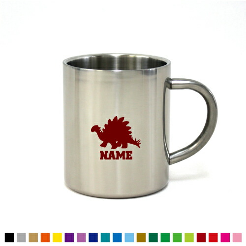 ステゴサウルス3 名入れステンレスマグカップ(小) 真空二重構造 サーモ サーモマグ サーモステンレス 保冷性 保温性 断熱 コーヒーカップ 湯飲み シルエット 選べるカラー【cb】恐竜 化石 肉食 草食 雑食 海 陸