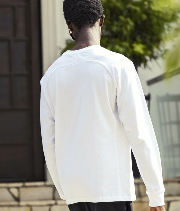 フロントはベーシックなセットインスリーブ、バックはラグランスリーブで組み合わせたスプリットラグランスリーブにより、スマートなシルエットと可動性の高さを両立。