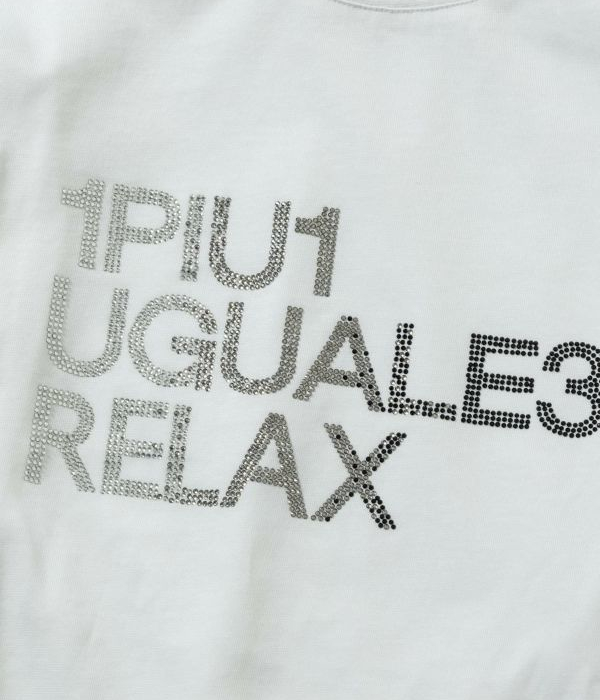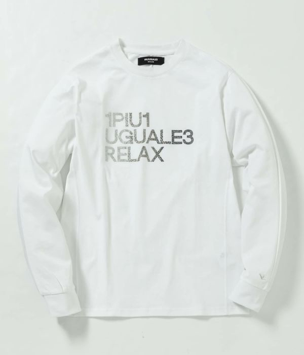 1PIU1UGUALE3 RELAX ウノピゥウノウグァーレトレ リラックス ラインストーンロゴロングTシャツ メンズ ロンT 長袖 カットソー カジュアル スポーツ