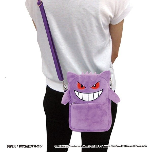 ポケモンに登場するゲンガーをモチーフとしたぬいぐるみ素材の可愛らしいポシェット。
