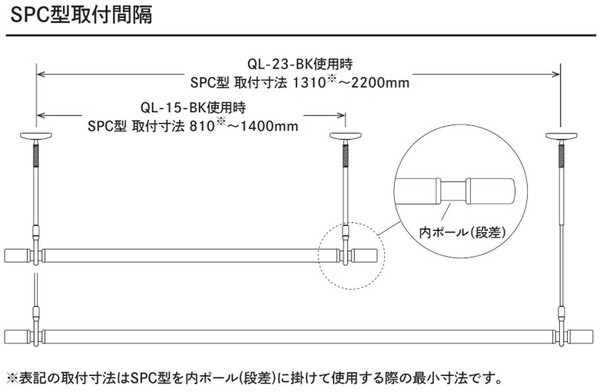 2本セット 川口技研 ホスクリーン SPC型 SSサイズ BK色 SPCSS-BK ポール 取り外し 長さ調整 荷重目安ガイド【送料無料】