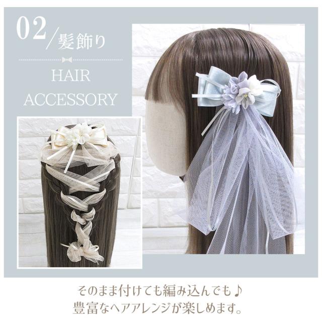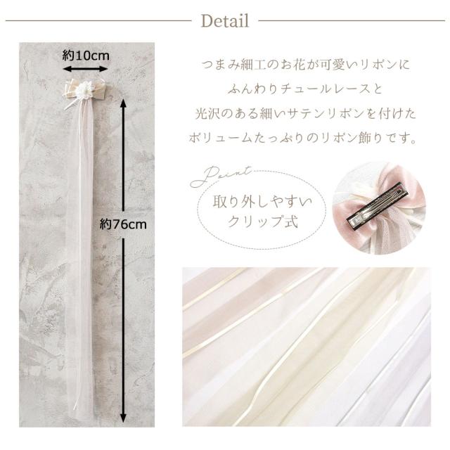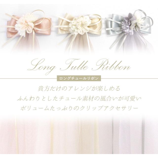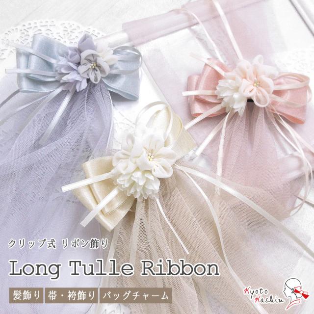 ロング チュール リボン クリップ 約76cm 袴 帯飾り 髪飾り バッグチャーム クリップ レース サテン ピンク ブルー ベージュ パステル くすみ カラー 卒業式 成人式 結婚式 前撮り 和洋兼用 振袖 袴 着物 和装 洋装 ドレス