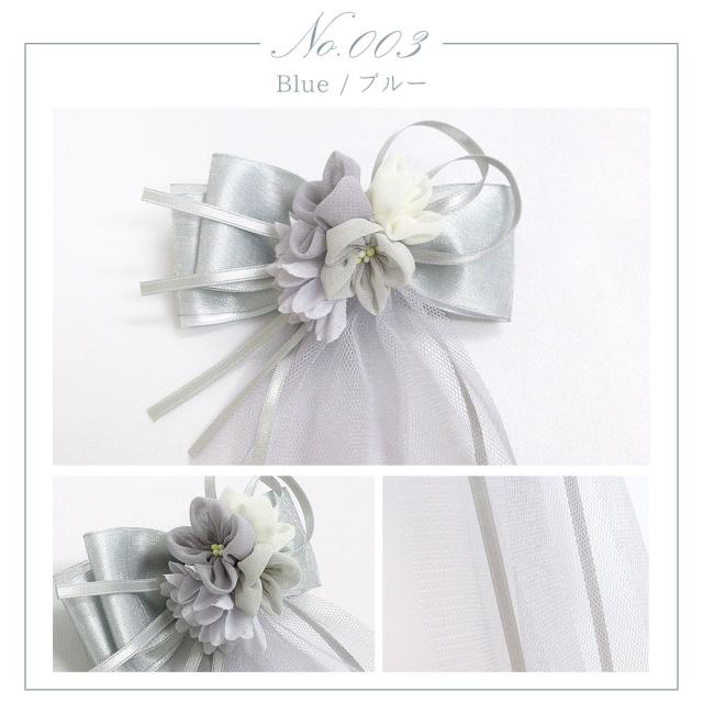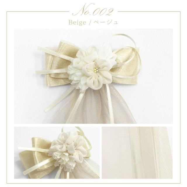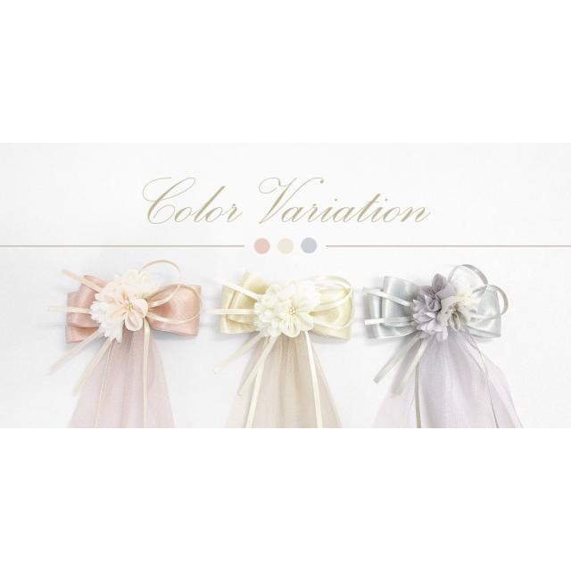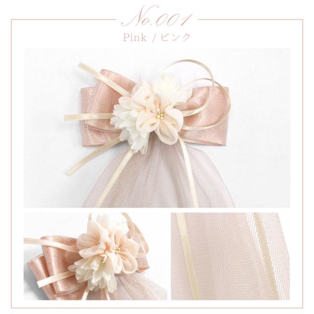 ふんわりと風にたなびくロングリボン部分はチュールリボンと光沢のある細いサテンリボン。