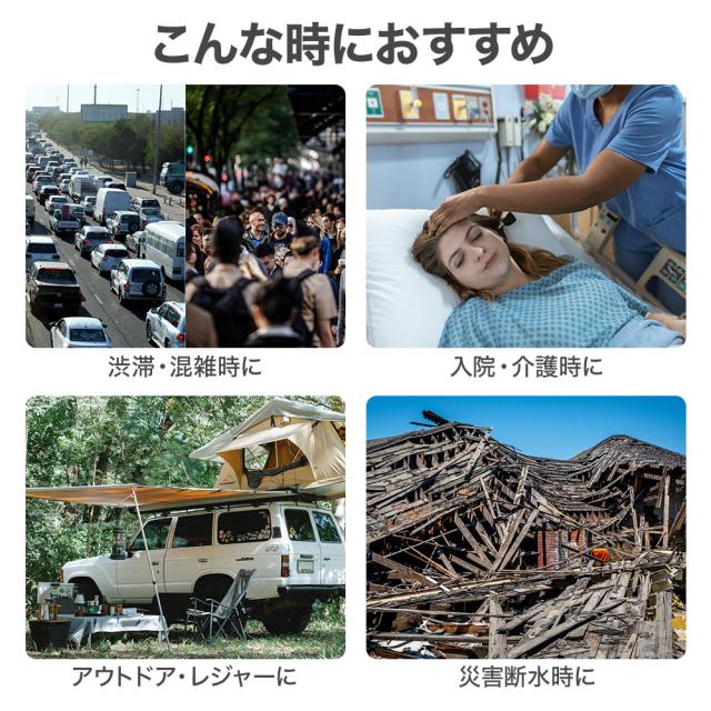 渋滞時、アウトドア、レジャー、トイレの混雑時、介護、入院中、