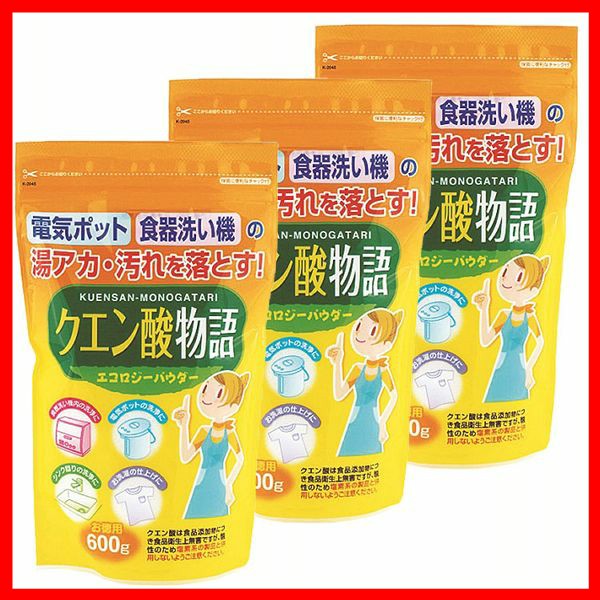 【3個セット】洗剤 ナチュラルクリーニング 酸性 クエン酸物語 600g K-2045 紀陽除虫菊 洗剤 ナチュラルクリーニング 酸性 湯アカ 水垢 電気ポット 食洗機 黄ばみ防止 シンク周り パウダー状 まとめ買い
