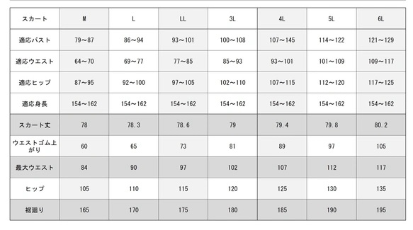 スカート丈、ウエストゴム上がり寸法は無料で承っております。