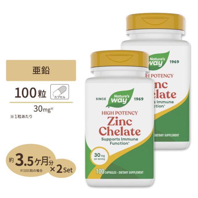 [2個セット]ネイチャーズウェイ 亜鉛 (アミノ酸キレート) 30mg 100粒 Nature's Way サプリメント サプリ 亜鉛 ダイエット サプリメント 健康 ミネラル類 亜鉛配合