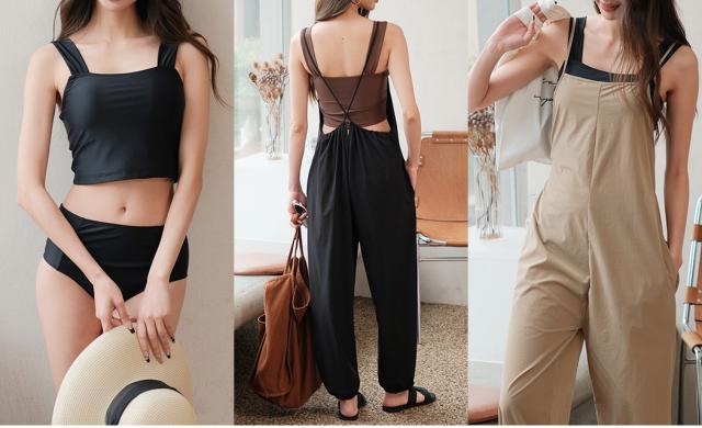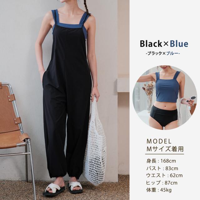 オシャレに隠せるサロペット水着