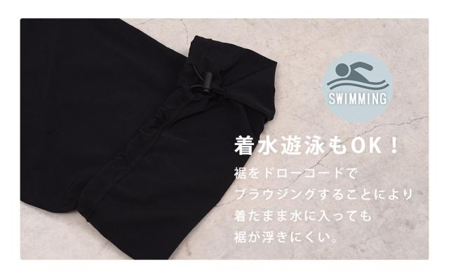 着たまま水に入っても裾が浮きにくい。